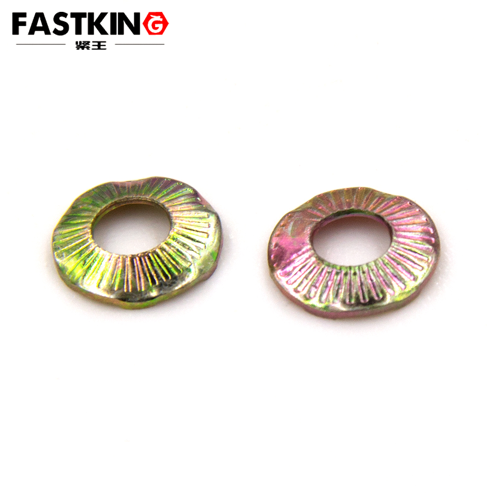 六爪接地墊片,全名 “接地碟形防松鎖緊墊圈”,是基于碟形防松墊圈改良而來的產品。其一面帶有獨特的防滑齒紋,另一面則分布著六個尖銳的爪。因品牌及加工模具的差異,表面齒紋樣式多樣