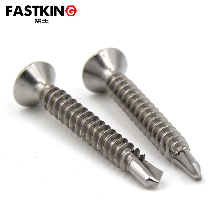 這種十字槽沉頭自攻自鉆螺絲帶有鉆尾尖,尖部像麻花鉆頭而得名,在裝配時螺釘能自行鉆出中心孔子,然后借助于臨近的螺紋部分在載體上孔內(nèi)自攻擠削出與之配合的螺紋,故稱為自鉆自攻螺絲