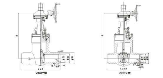 集團生產(chǎn)的Z61Y-250、Z61Y-320 型高壓電站閘閥:手動、對接焊連接形式、明桿楔式剛性單閘板,閥座密封面材料為硬質(zhì)合金,公稱壓力 PN250~PN320,閥體材料為碳素鋼的高溫高壓電站閘閥。